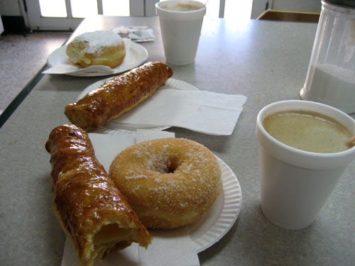 We got a little breakfast at a bakery, something sorely missing in Atlanta. Fine coffee, delicious pastry, a couple of donuts, how I'd