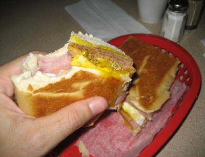 The ham, egg and cheese sandwich was more like a hefty ham sandwich