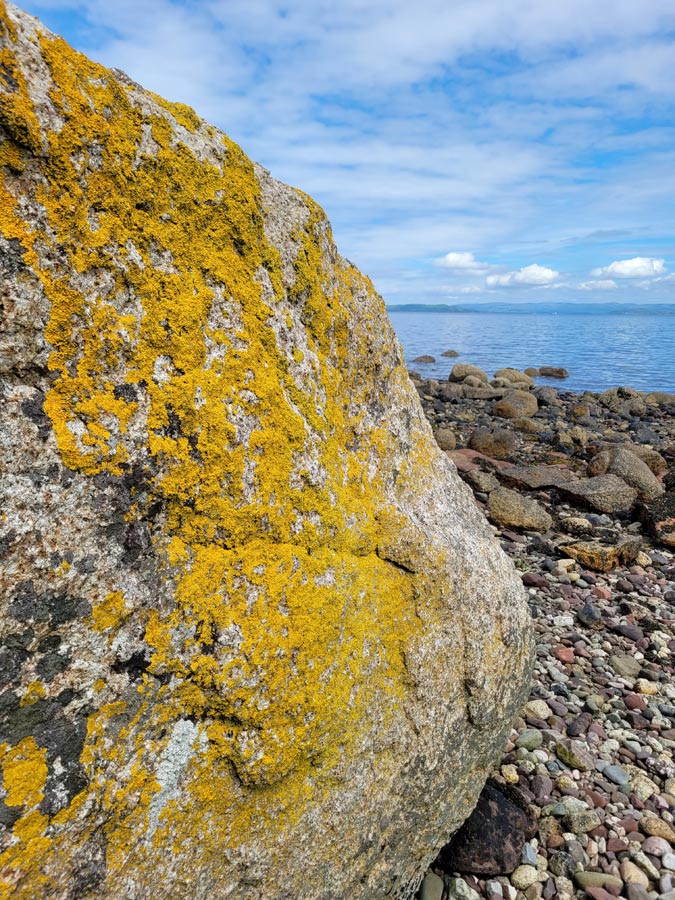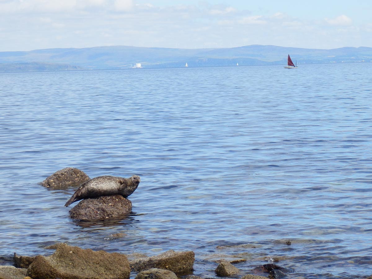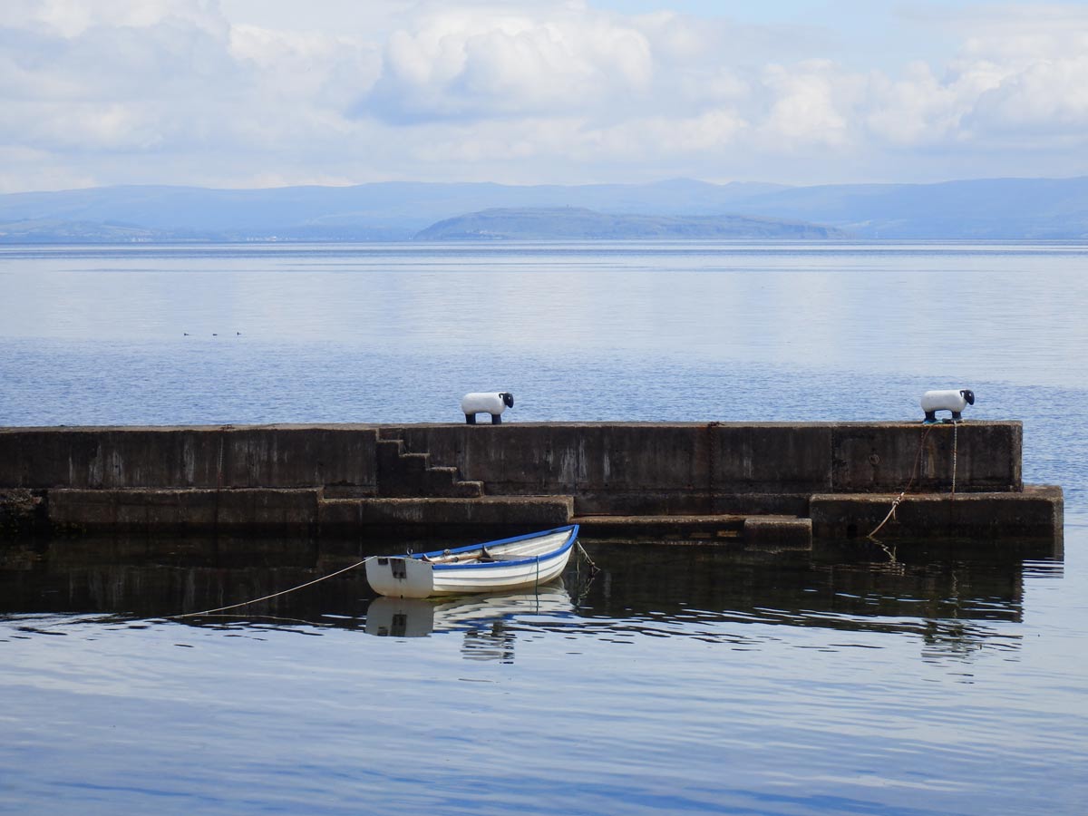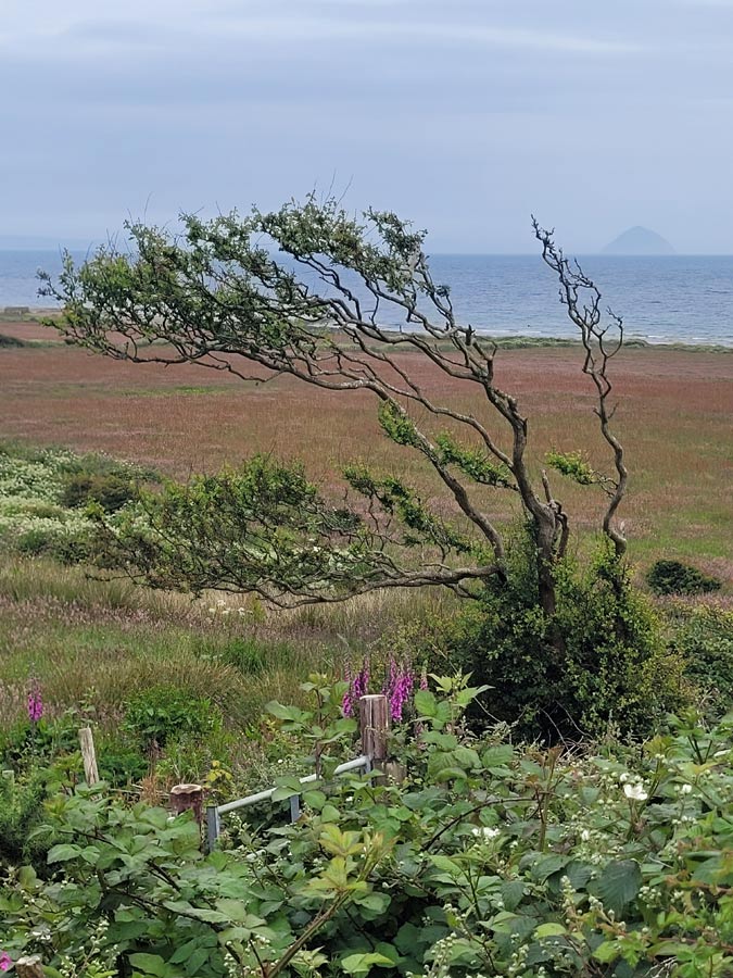 We hiked from there to the shore, past the remnants of another burial mound, to look down the Firth of Clyde at the distant Ailsa Craig. The conical island is a bird sanctuary.