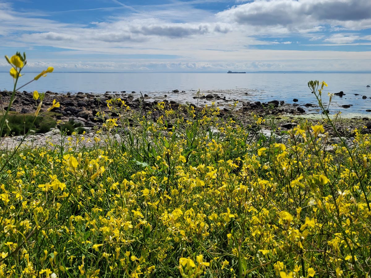 Sometime shortly before our trip, I’d seen a video about James Hutton, “the father of modern geology.” Our hike led to a rock Hutton spied in the late 18th century, an “unconformity” he used to argue the earth was far older and less static than many Christians believed. As a non-geologist, the formation itself just looks like some interestingly-textured rocks. But the hike provided great views of the village, loch, and around to the firth. Also, more flowers than you could shake a sedimentary rock at.