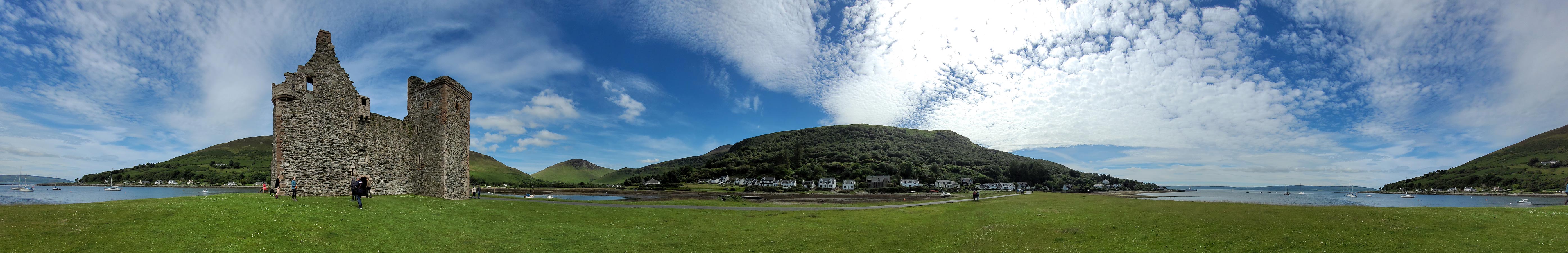 Our first overnight stop, Lochranza, on the north end of the island is a tiny village with a crumbling castle (it is Scotland after all). Check out this panorama (click, zoom, scroll.) We walked around and through the ruin before setting off on a neighboring hike.