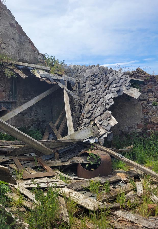 The Lagg fed us traditional fish and chips, complete with mushy peas, and a burger for dinner. Breakfast featured eggs, bacon, roasted tomatoes and blood pudding, fuel for the wettest leg of our journey. Spitting rain and low clouds washed over us. It is Scotland, after all.