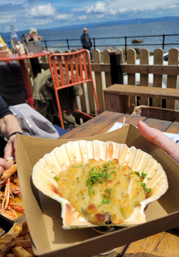 Arran is only 20 miles long and half as wide, with a road that runs along the seashore for most of the circumference, making e-bikes the perfect way to see just about everything in a few days. Within a couple of hours, we stopped at a local cheese shop, passed countless flowers, gawked at sunbathing seals, and had lunch at a marvelous seafood restaurant, Mara.